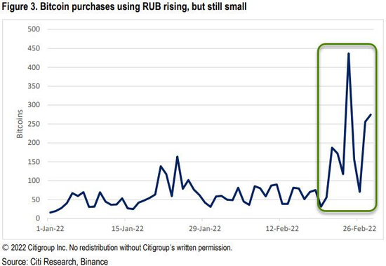 所以,近日比特币价格上涨更多是因为投资者定位于俄罗斯需求的预期上升,而不是俄罗斯需求本身。这一点很值得关注,因为如果预期的俄罗斯购买量没有实现,比特币的走势可能会与科技股重新趋同。